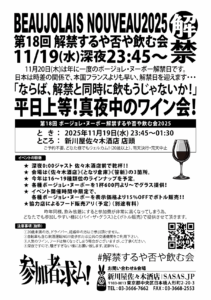 2024年11月20日(木)は年に一度のボージョレ・ヌーボー解禁日です。
