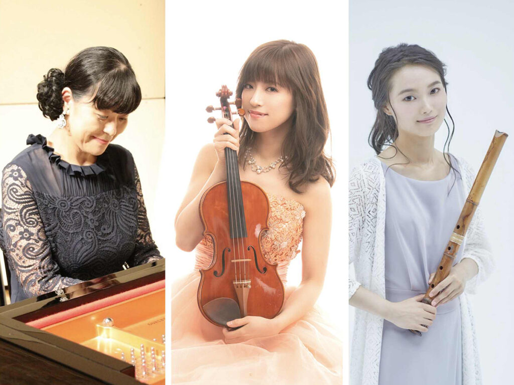 日本酒好きなヴァイオリニスト羽純の一声で集まった、この日のためのピアノ、ヴァイオリン、尺八が織りなす異色のアンサンブル。